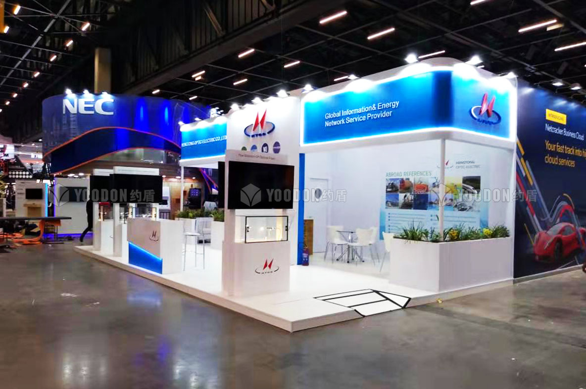 本屆展會約盾展覽為亨通光電提供了展位設計搭建服務,亨通光電,是服務于光纖光網和電力電網及網絡建設運營、金融投資、新能源、新材料等多元領域的國家級創新企業,中國光纖網絡、電力電網領域規模最大的系統集成商與網絡服務商,全球光纖通信前三強。
