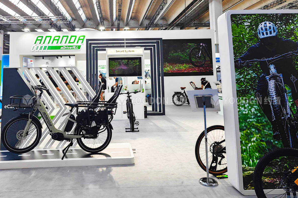 2023歐洲自行車展覽會(EUROBIKE)于2023年6月21日至6月25日在德國法蘭克福會展中心舉辦,促進了自行車運動在全球的發(fā)展。約盾展覽助力安乃達在歐洲展會搭建中宣傳企業(yè)品牌未來發(fā)展,以精致的造型設(shè)計,塑造出一個充滿活力的綠色展位,贏得客戶和參展觀眾盛贊。