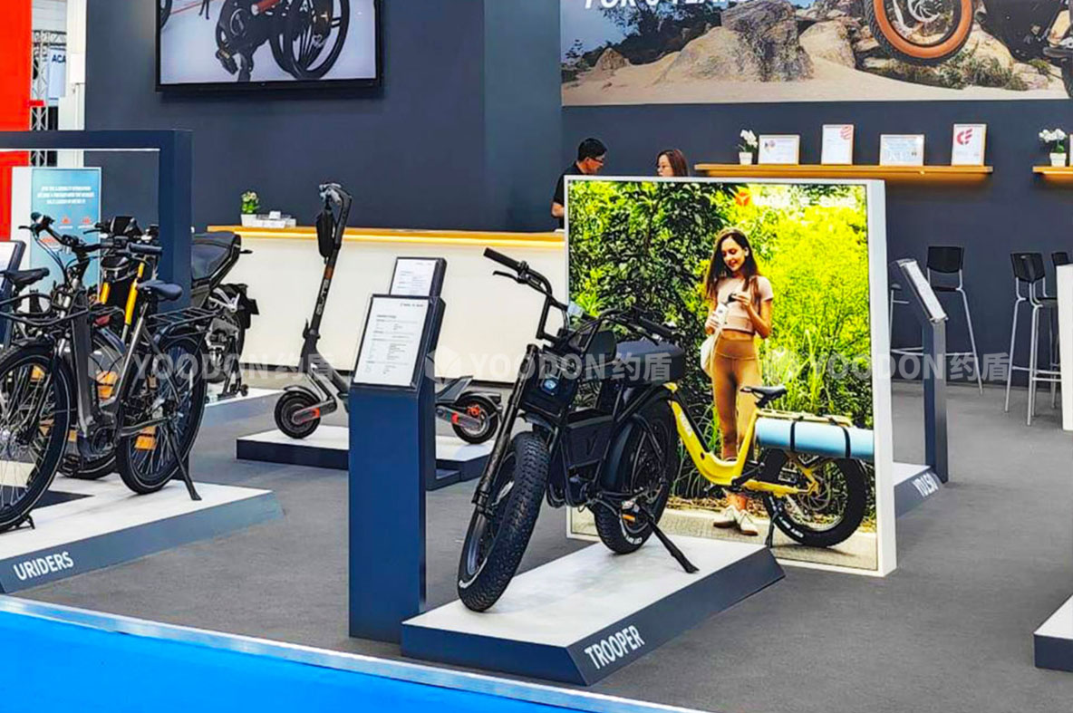 2023歐洲自行車展覽會(EUROBIKE)于2023年6月21日至6月25日在德國法蘭克福會展中心舉辦,促進了自行車運動在全球的發(fā)展。約盾展覽德國展臺搭建方案根據(jù)客戶需求,以生活時尚簡約設(shè)計方向,打造出雅迪國際范品牌形象!